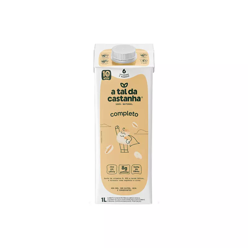 O Completo é uma bebida vegetal desenvolvida para oferecer nutrição prática e completa em qualquer momento do dia. Feito com proteína de arroz e ervilha, castanha-de-caju e aveia sem glúten, é fortificado com cálcio, magnésio, zinco, vitamina D, vitamina B12 e ácido fólico. Com 8g de proteína por porção, fibras alimentares e baixo teor de açúcares e gorduras, é 100% vegetal, sem lactose, sem glúten e sem colesterol, ideal para quem busca equilíbrio, sabor e versatilidade na rotina.