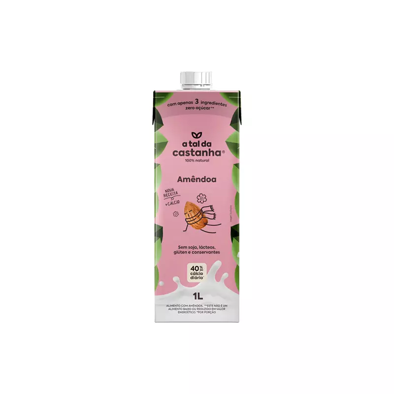 Com um sabor suave, o leite de amêndoas é perfeito para substituir o leite tradicional em diversos preparos. São só três ingredientes: água, pasta de amêndoa e carbonato de cálcio (cálcio). Sem açúcar ou aditivos químicos. Nova receita com mais cálcio – 40% do cálcio diário.