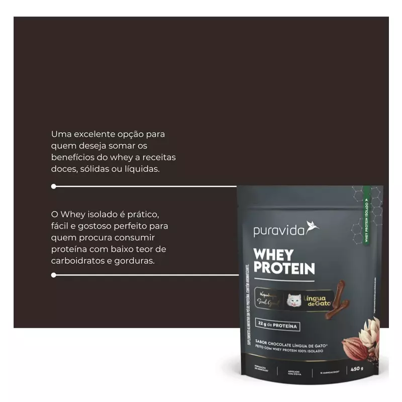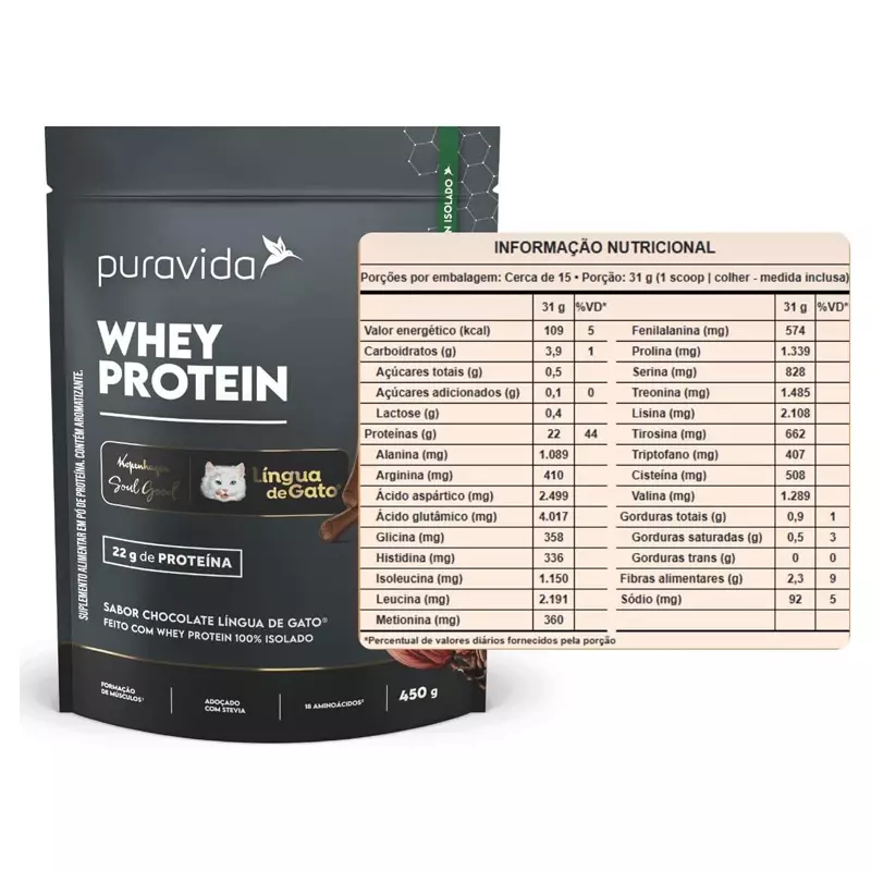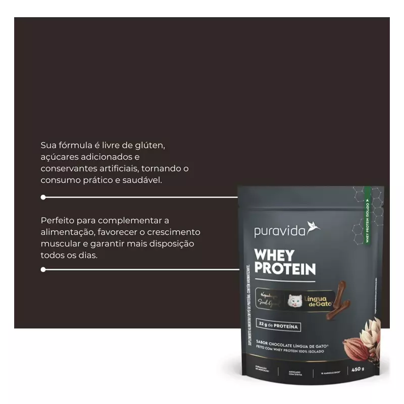 O Whey Protein Chocolate Língua De Gato Puravida 450g é o suplemento ideal para quem busca uma fonte de proteína de alta qualidade.